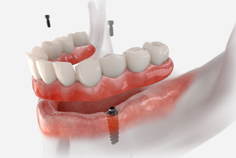 Missing lots of teeth? Implant Stabilized Overdentures are a cost-effective alternative to traditional dentures. These overdentures snap into place over 2-4 implants, preventing bone loss while vastly improving your ability to chew and taste food.